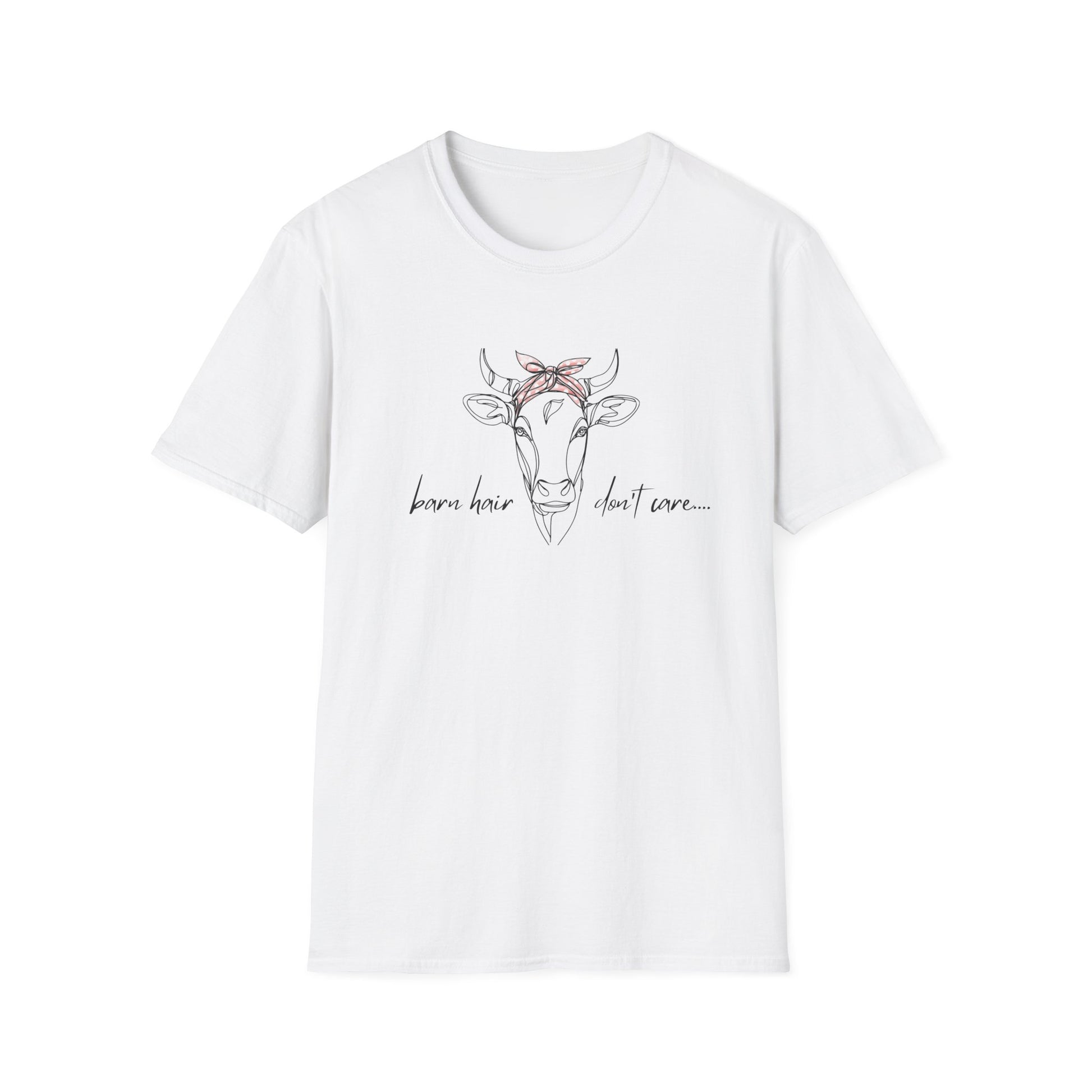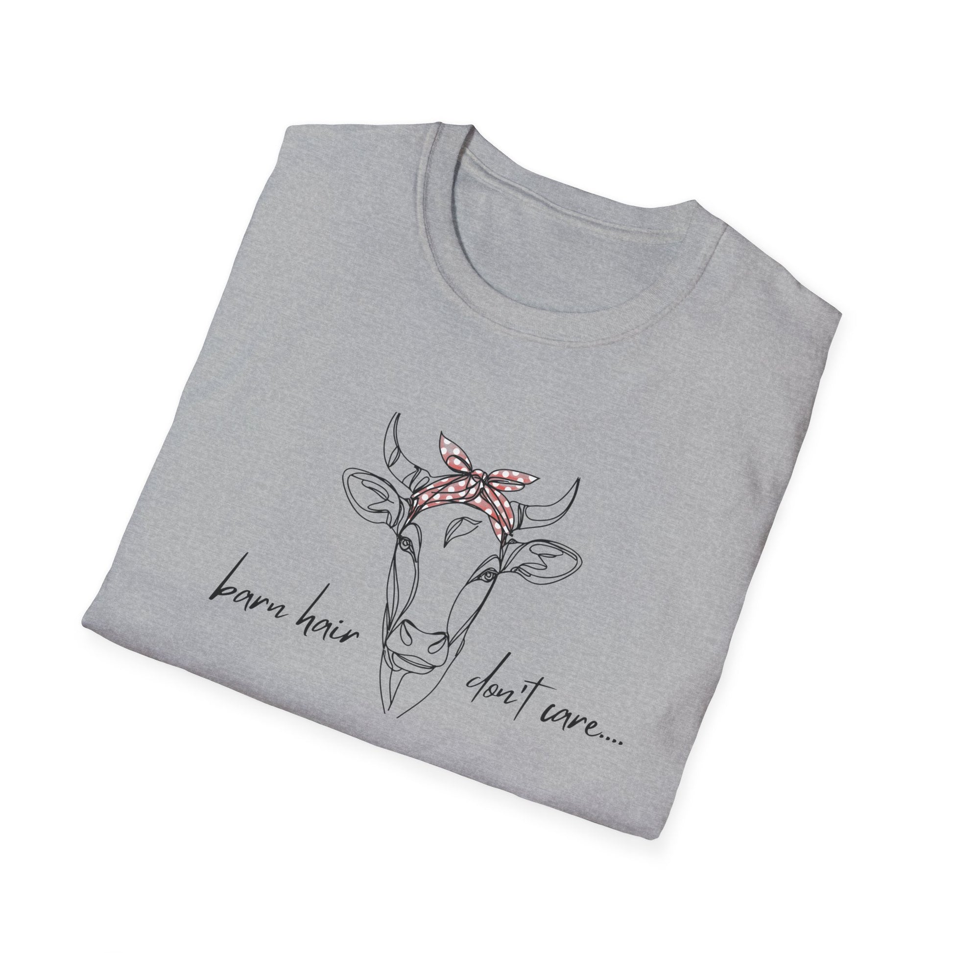 Description: Show off your barn life pride with a touch of humor! This playful tee features a hand-drawn cow wearing a red polka-dot bandana, paired with the sassy phrase “barn hair, don’t care…”. Perfect for farmers, cow lovers, homesteaders, and anyone who knows that a good day on the farm is worth a little messy hair. Made with soft, breathable fabric, this shirt is as comfortable as it is stylish—ideal for everyday wear, barn chores, or casual outings.